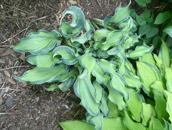 Even as the tight eyes unfurl in early spring, the young leaves create an amazing rosette-like form of tightly rippled ridges, similar to the way Wheee! emerges. As the long, narrow leaves expand they are held upright, never hugging the ground as they do with the parent plant. What results is a twisted mass of slender, yellow leaves of excellent substance with wavy, curled edges of blue-green that randomly streak into the leaf center. Hosta Gravity Rocks defies gravity - and description - as it forms a chaotic clump at least 8" tall and 15" across that blooms in mid summer with lavender flowers. If you want something different, you need Gravity Rocks!