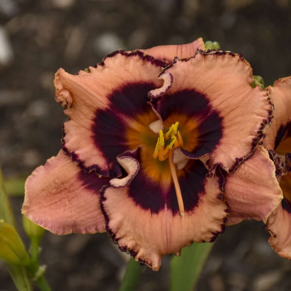 5" mauve rose flowers have an orange tint and are beautifully contrasted with its wine red eye and matching picotee edge. We've observed consistent rebloom in our field, excellent for a daylily with this large of flowers.